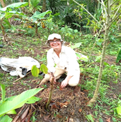 3rd farm. From Aripo, I spent a night in Port of Spain, and left the next day for the Roods and Perches Farm in Tableland, in south-eastern Trinidad. I spend a full day with Wynette and her brother, Dr. Winthrop Harewood. They trusted me to plant 5 cocoa trees on the farm, in a place we named “Monica´s Row”.