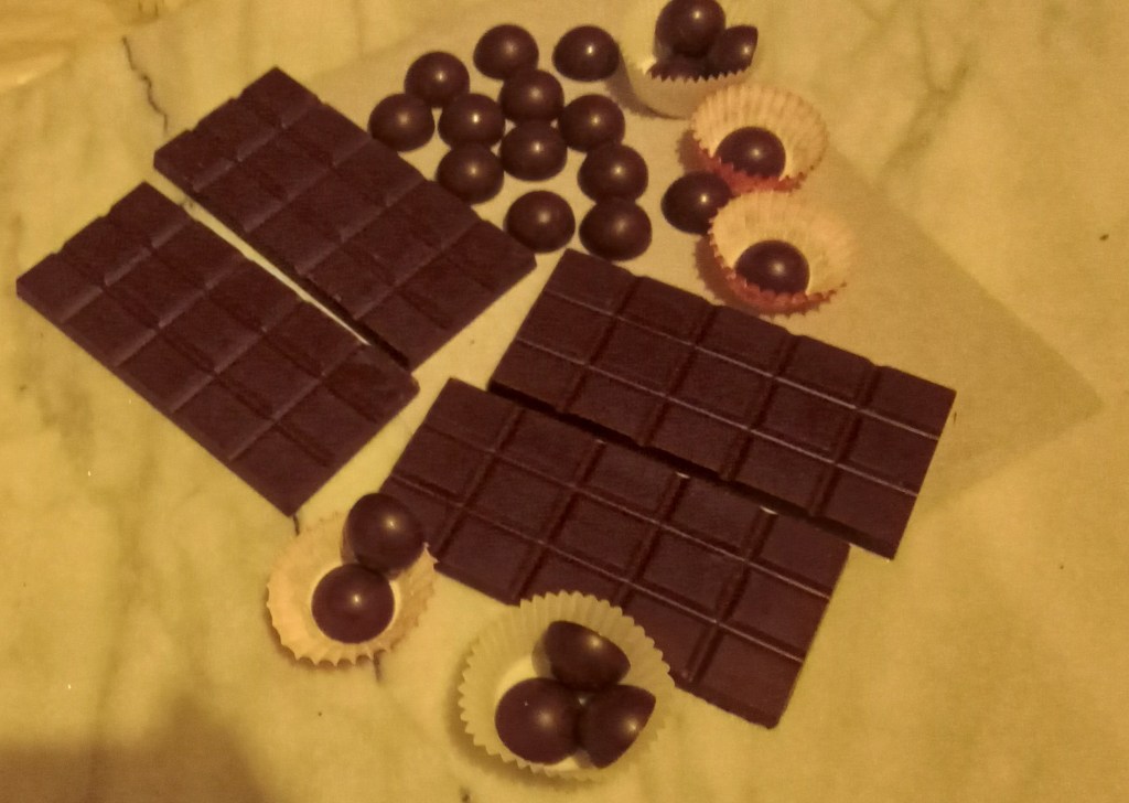 Departure time. I left my work boots and most of my clothes in Trinidad and filled my backpack with cocoa beans from Roods and Perches, organic cocoa nibs from Bethany Estate and cocoa butter and cocoa powder from Charamal Estate. My backpack has never been so heavy, but it has never smelled so good either. Safely back in back in Portugal, I used some of the cocoa butter and nibs to make Easter bonbons and mendiants.